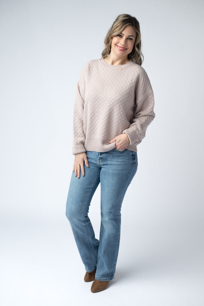 Slip into effortless spring style with the Gianna Pullover Sweater. This cozy crew neck features a delightful fun pattern that brings personality to your wardrobe, while coordinating ribbing at the neckline, cuffs, and hem creates a polished, put-together look. Perfect for layering or wearing solo, it's your new go-to for breezy season transitions.